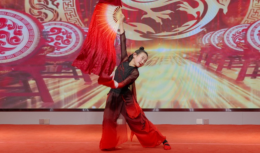 架子鼓《逆戰(zhàn)》:宋宗奕(新欣園公司宋立帥之子)、張芮萌(新啟元公司劉盈辛之女)、龔云哲(新欣園公司龔學(xué)佳之子)